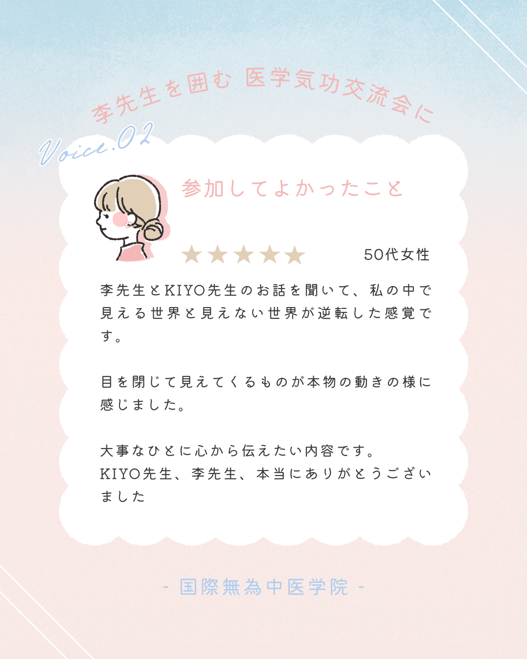 受講者のシェアだけでなく、キヨさんの話を幅広く聞くことができて、毎回とても勉強になりました。